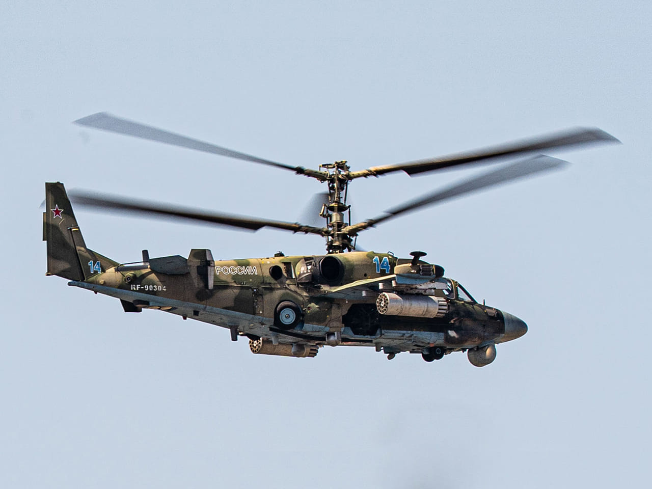 Носовий конусоподібний обтікач фюзеляжу військового гелікоптера Ка-52 російських окупаційних військ (б/н “14 синій”, RF-90304, з/н 35382612003, 2015 р.в.).