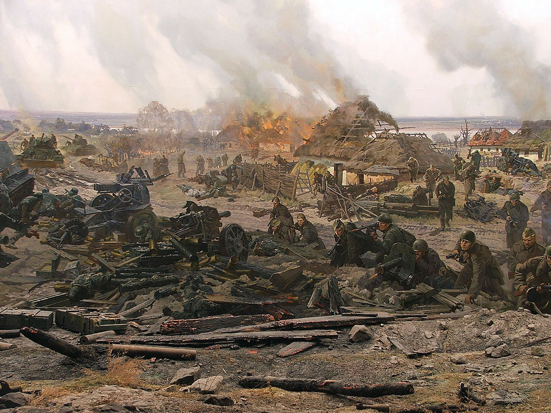Діорама створена на честь 35-ої річниці перемоги у Другій світовій війні студією військових художників ім. Грекова. Безпосереднім виконавцем є заслужений діяч мистецтв України М.С. Присєкін. Над діорамою він працював 3 роки – з 1975 по 1978.