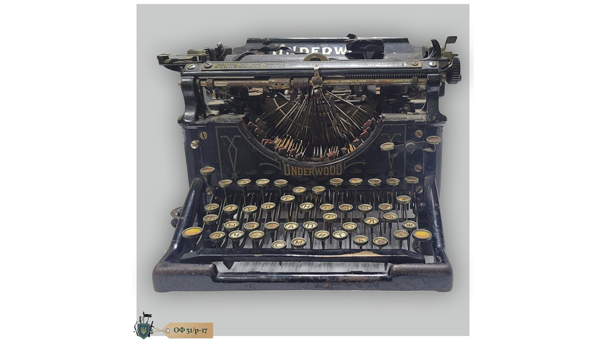 У фондах нашого музею зберігається оригінальна друкарська машинка Underwood Standard*, виробництва США, першої половини ХХ століття. Цей зразок оснащено кириличною клавіатурою, що вказує на його адаптацію для роботи в українсько- та російськомовному середовищі.