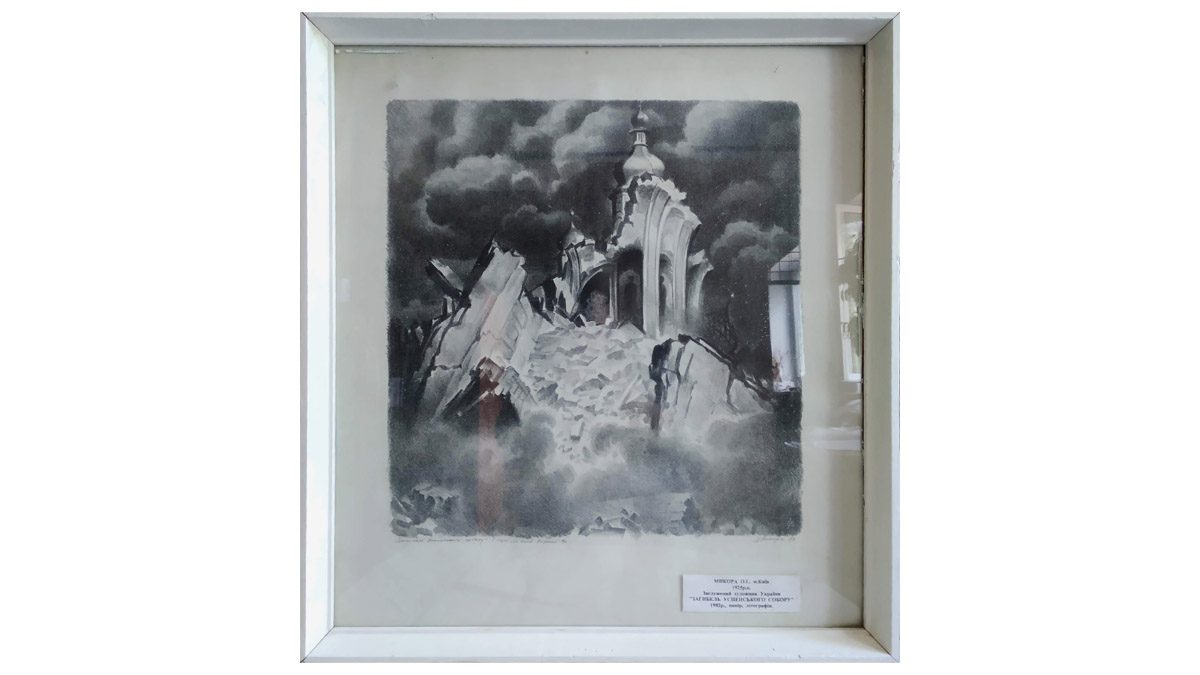 Літографія «Загибель Успенського собору» належить до серії літографій «За Київ рідний» (1982—1983) заслуженого художника України Олександра Ілліча Мікори.