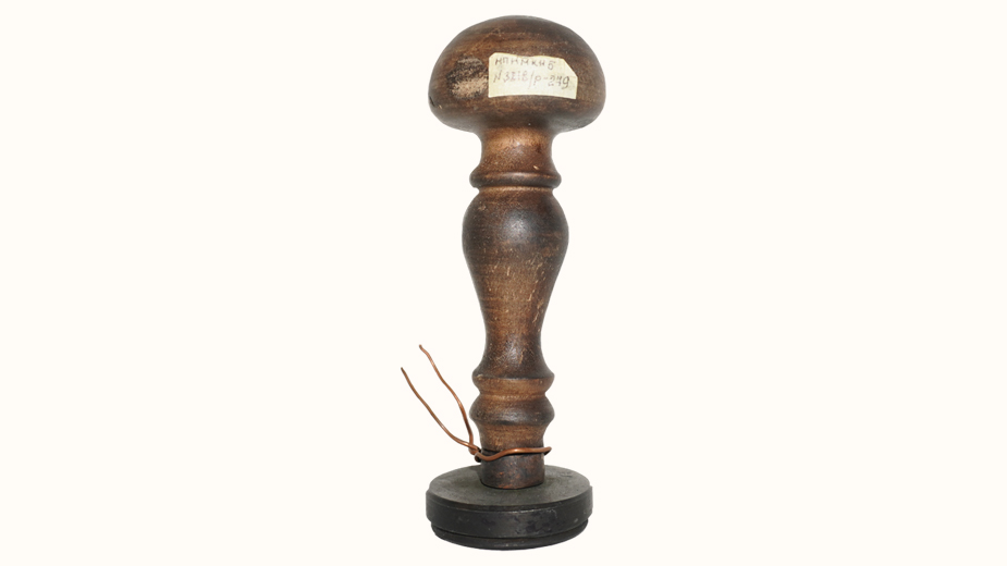 Печатка діаметром 35 мм, кругла, з зображенням в центрі орла з розгорнутими крилами, що тримає в кігтях вінок зі свастикою в центрі. Під ним напис в дві стрічки: Kreifleitung/Freudenthal (Районное управление / Фройденталь*). По колу вгорі «Nationalsozialistische deutsche Arbeiterportei» (Націонал-соціалістична німецька рабітнича партія). Внизу по колу «Bau Sudetenland» (Строительство Судетской области**). Печатка кріпиться до точеної дерев’яної фігурної ручки.