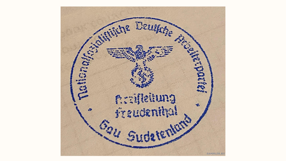 У період Третього рейху партійні штампи та печатки відігравали значну роль в офіційній та неофіційній документації, підтверджуючи приналежність до партії НСДАП*** та її організацій. Вони використовувалися для ідентифікації, авторизації документів і символізували владу та контроль партії.