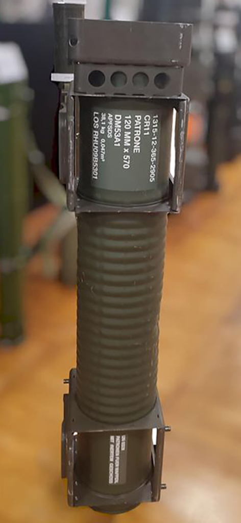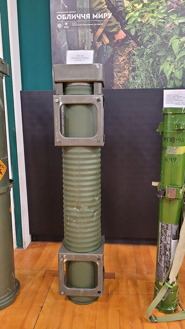 Тубус від підкаліберного снаряду танка Leopard 2 – цей експонат поповнив фонд експозиції російсько-української війни влітку 2023 року.
