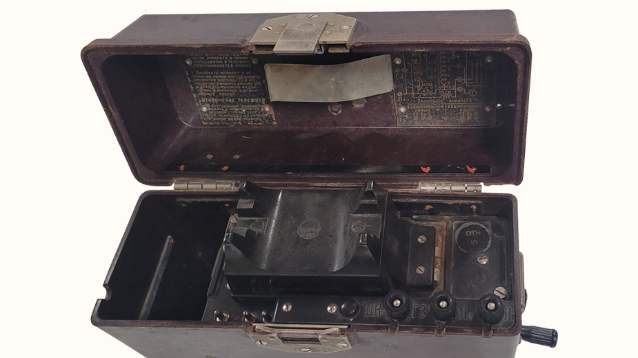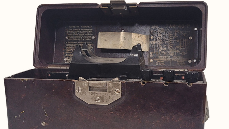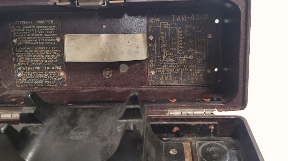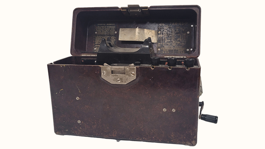 ТАІ-43* – військово-польовий телефонний апарат системи МБ (місцева батарея) з індукторним викликом в бакелітовому корпусі виробництва СРСР, 1957 р.