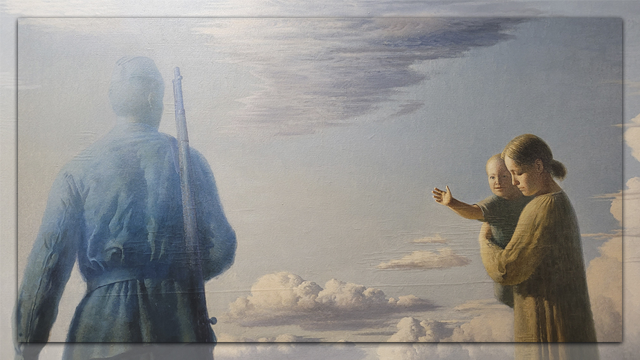 Картина «Пам’ять» написана у 1990 році. Автор тяжіє до символічного узагальнення зовні простих сюжетів. Життя і живопис для автора- це одне ціле. Море, небо, жінка є суб’єктами важливості у його роботах. Часто використовує каміння і воду, як символи вічності…